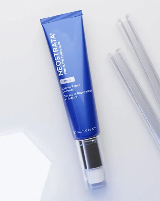 For night: For night: NEOSTRATA® SKIN ACTIVE Retinol Repair Complex is a potent antiaging boosting repair cream formulated to target skin’s volumizing matrix and provide a lifted and firmer appearance, diminish the look of dark spots, and smooth lines and wrinkles. This concentrated complex delivers high-strength 0.5% pure, stabilized Retinol in a time-release delivery system along with NeoGlucosamine® to synergistically target skin’s natural volumizing matrix. These powerful ingredients are also known to reduce the appearance of fine lines, wrinkles and uneven coloration.