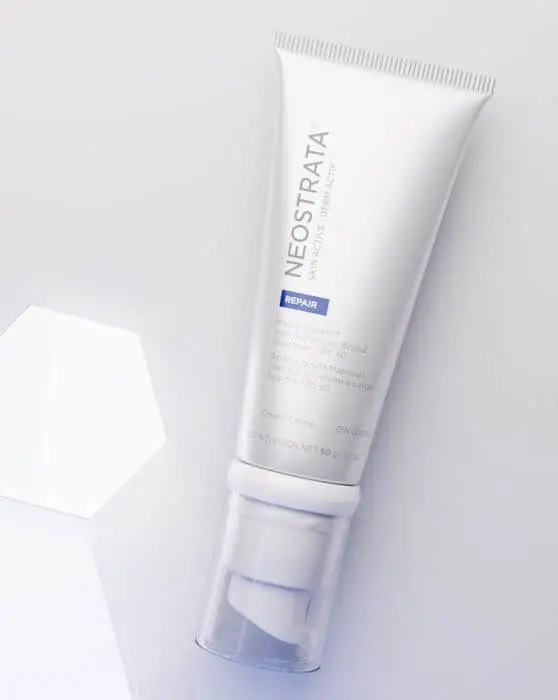 For day: NEOSTRATA® SKIN ACTIVE Matrix Support with Sunscreen Broad Spectrum SPF 30 with retinol and NeoGlucosamine® improves skin texture and uneven tone while helping skin to look firmer and healthier by targeting the skin's hydrating matrix to firm the skin's appearance and repair the look of fine lines and wrinkles.