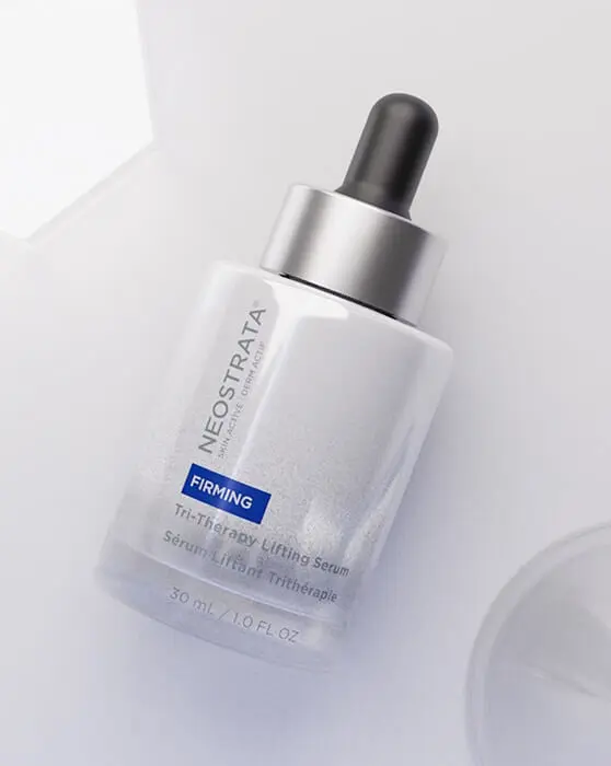 Serum: Applying a serum before moisturizing gives skin an extra boost and adds a layer of protection from the elements NEOSTRATA® SKIN ACTIVE Tri-Therapy Lifting Serum volumizes the look of slack skin with AMINOFIL Amino acid derivative concentrated to target skin’s hydrating matrix for a more lifted appearance. Renews Tone with Gluconolactone, a Polyhydroxy Acid & antioxidant chelator that helps to gently exfoliate and promote a more even skin tone, and hydrates with low molecular weight (LMW) hyaluronic acid.