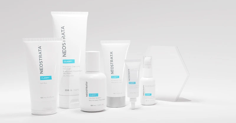 A targeted collection of products for oily and acne-prone skin types. They utilize the exfoliation power of Glycolic and Mandelic Acids, along with NeoGlucosamine®, to help clarify surface texture for smoother and healthy skin. Contains a high-strength acne treatment solution to help clear clogged pores, reduce blemishes and target skin oiliness.